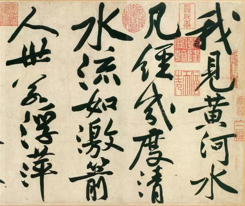 今人沈尹默在《书法论丛》中解释得比较明白,说“屋漏痕”是:“雨水渗入壁间,凝聚成滴始能徐徐流下来,其流动不是径直落下,必微微左右动荡着垂直流行,留其痕于壁上。”从沈尹默先生的解释中可以看出,这个“痕”的“形象”是自然的、有涩势的、有质感的、总体垂直的。若用笔蘸墨书写,能达到这个效果,那就进入到了笔法的最高境界。“屋漏痕”,是对用笔要求和艺术效果的一个非常著名的形象化比喻,是有志于书法的人不可不知的概念。需要指出的是,怀素的“四个比喻”也是可供借鉴的,其中的“坼壁之路”,指墙壁自然开裂处具有天然清峭、没有人为布置之巧的“裂纹”,用笔若能如此,点画一定会浑然天成。这一比喻也常为后人引用。