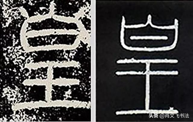 一些比较静态的书体呈现的是静态的平衡,强调绝对的均匀对称,这是绝大多数人的审美习惯,是书法众多审美中的一种,但书法中更多的是在动态中寻求平衡,这样的造型生动活泼,有生命感。我们以《峄山碑》和《袁安碑》里“皇”字为例: